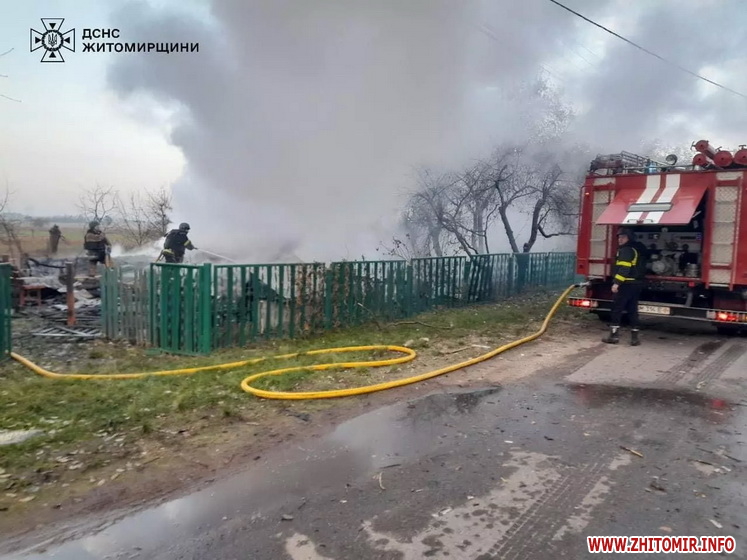 «Сьогодні під ранок у Житомирському районі рятувальники ліквідували пожежу, що виникла внаслідок чергової ворожої атаки. Загорівся дерев'яний житловий будинок, вогонь від якого перекинувся на шлакоблокову господарську будівлю. Вогнем знищено будинок та покрівлю споруди, травмованих та загиблих немає», - поінформували рятувальники.