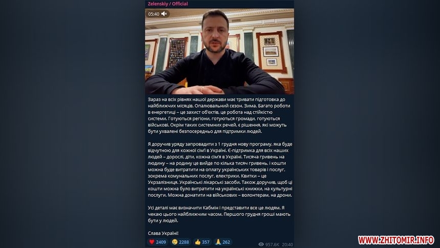 Нагадаємо, 29 жовтня 2024 року на засіданні Уряду прем’єр-міністр Денис Шмигаль пояснив, що «тисяча президента» – це програма зимової єПідтримки, яка має три мети: підтримати вразливі родини, стимулювати попит на українські послуги, задонатити на армію.
