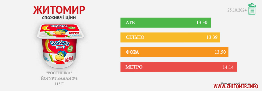 Моніторинг здійснено на основі інформації, отриманої за методом контрольної закупки 25.10.2024 р. у місцях продажу: АТБ, пр. Миру, 15 А, Фора, вул. Лятошинського, 2, Метро, вул. Ватутіна, 55-в, Сільпо, вул. Житній ринок, 1