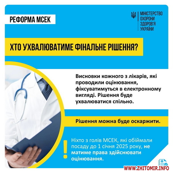 Як повідомляв Житомир.info, 22 жовтня 2024 року президент Володимир Зеленський ввів у дію рішення РНБО щодо протидії корупційним та іншим правопорушенням під час встановлення інвалідності посадовим особам державних органів, а прем’єр-міністр Денис Шмигаль повідомив про ліквідацію МСЕК до кінця 2024 року.