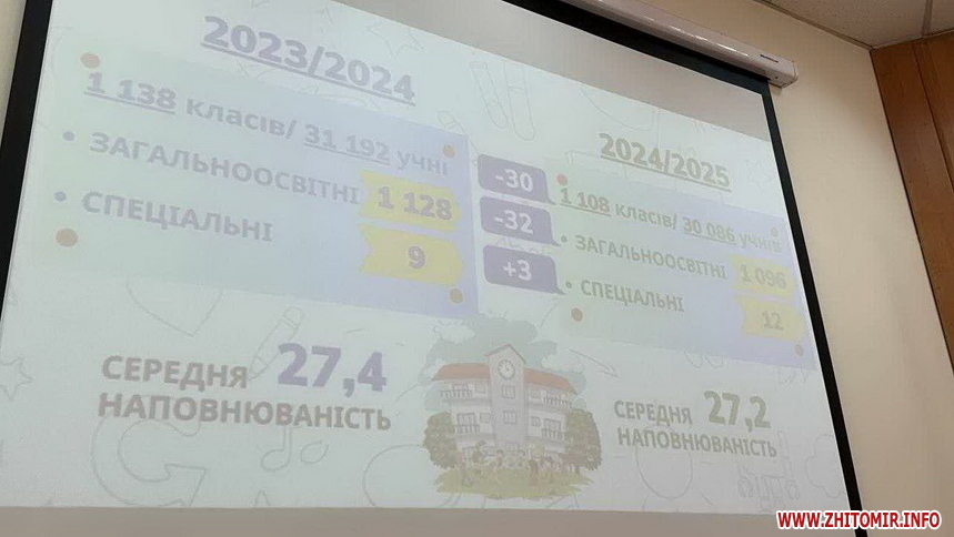 Як повідомляв Житомир.info, у закладах загальної середньої освіти Житомирської міської територіальної громади у 2022/2023 навчальному році було відкрито 1125 класів, де навчалося 31797 учнів, середня наповненість класів становила 28,3.