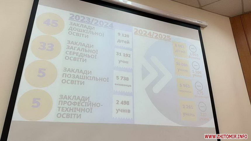У ліцеях та дитсадках Житомирської міської громади у порівнянні з 2023 роком на понад тисячу скоротилася кількість учнів у ліцеях та на понад тисячу – вихованців дитсадків.