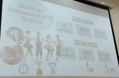 «У нас контингент учнів по всім закладам освіти, які за кількістю не змінні, зменшується. 45 закладів дошкільної освіти, 33 заклади загальної середньої освіти, 5 закладів позашкільної освіти і 5 закладів профтехосвіти.І в закладах загальної середньої освіти, і в закладах позашкільної освіти зменшення контингенту – понад тисячу дітей. По закладах дошкільної освіти контингент зменшився на 1053 вихованці, тому ми вперше в цьому році закриваємо групи – 52 групи на початок 2024/2025 навчального року закриті. Якщо подивитися по роках, то у закладах дошкільної освіти починаючи з 2021/2022 навчального року контингент різко зменшується і кількість груп зменшується, і цього року треба було закрити суттєву кількість. При цьому збільшується кількість дітей з особливими освітніми потребами, які навчаються в інклюзивних і спеціальних групах, збільшується. У спеціальних групах у нас уже навчається 1,5 тисячі дітей», - сказала Світлана Ковтуненко.