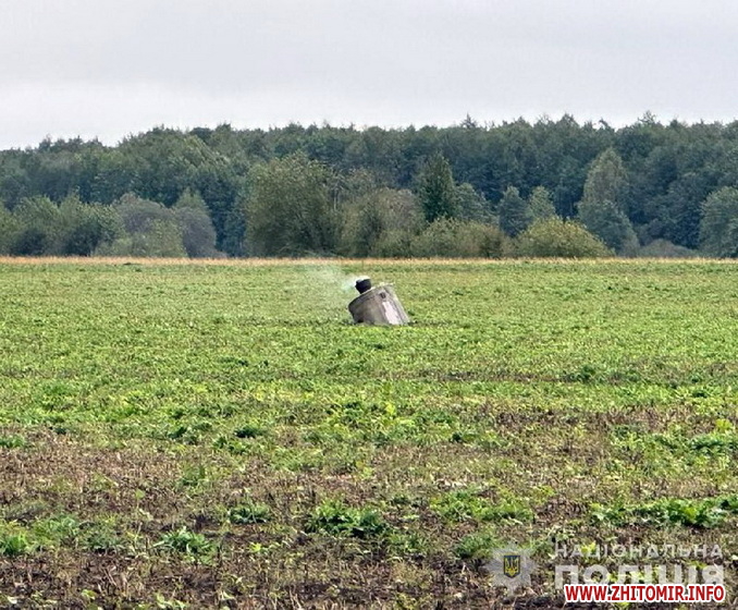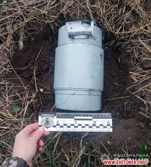 Вибухотехніки поліції Житомирщини знищили бойову частину російського безпілотника та касетні елементи.