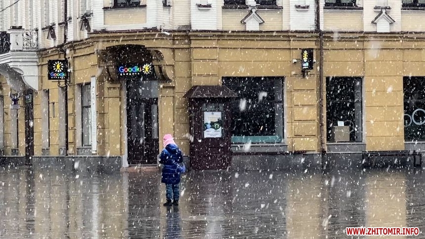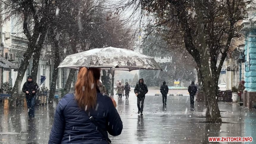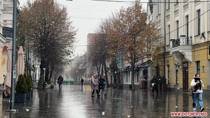 У Житомирі 13 листопада пішов перший сніг цієї зими. Зранку на пішохідній вулиці Михайлівській можна помітити містян, які поспіхом кудись прямують, але попри це на мить зупиняються, щоб подивитися, як сніг повільно падає. Діти не поспішають, а навпаки, розглядають усе довкола. І хоча опади несильні, в обідню пору в місті вже можна буде побачити дерева немов закутані в білу ковдру.