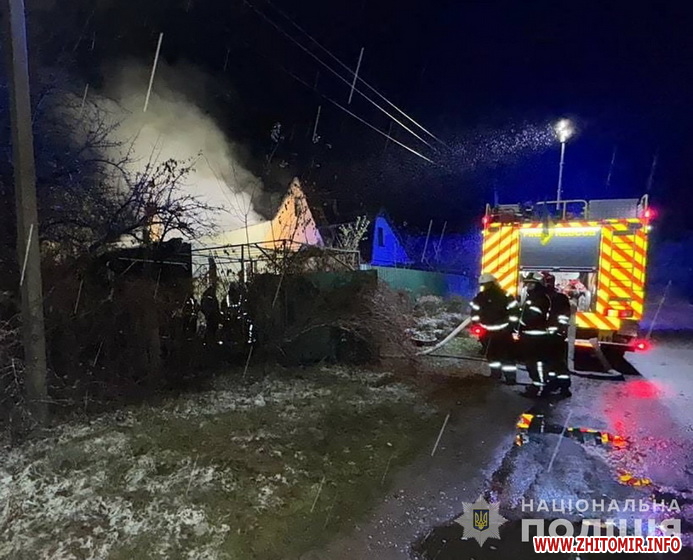 Цього ж дня близько 22:20 слідчо-оперативна група відділу поліції №1 Житомирського райуправління працювала на місці пожежі у селі Кмитові. Тут вогнем було пошкоджено будинок, в якому ніхто не проживав. Однак після гасіння пожежі було виявлене тіло чоловіка. Нині його особу встановлюють поліцейські.