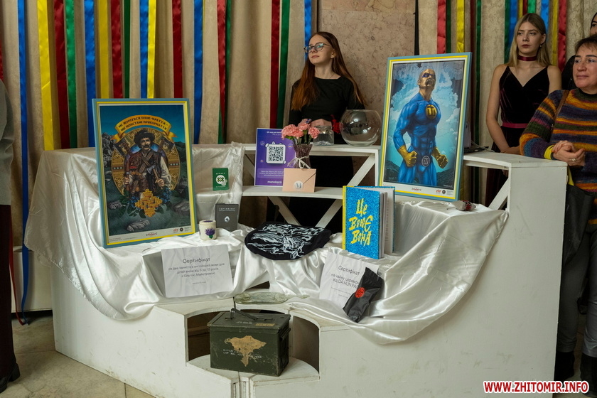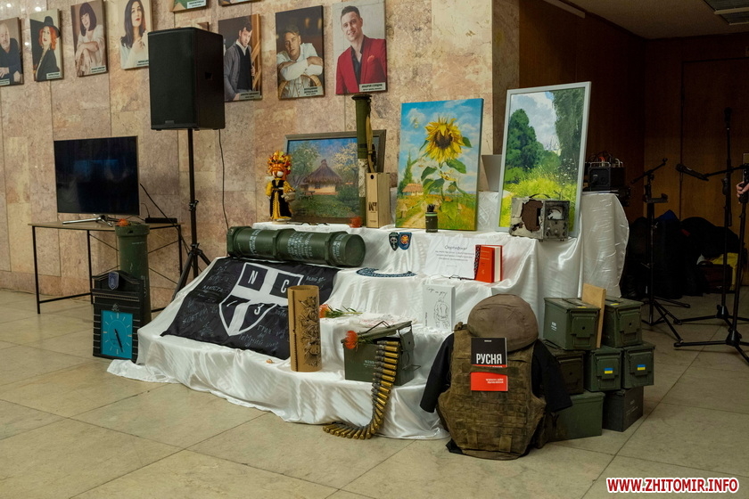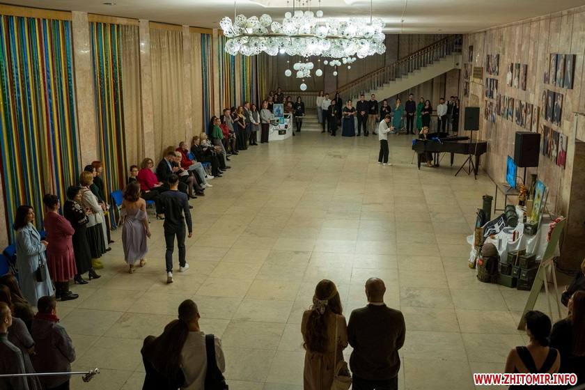 Гості вальсували у житомирському драмтеатрі. Програму доповнили виступами хореографів, майстер-класами та благодійним аукціоном. Розігрували лоти, передані військовими з фронту: картини, ляльки-мотанки, військові ящики, гільзи, календар «Знай наших» із підписом автора, книгу з підписом Валерія Маркуса та книгу Сергія Жадана з автографом.