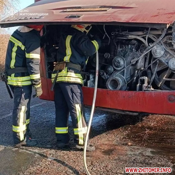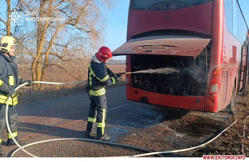 «Щойно наші рятувальники ліквідували пожежу рейсового автобуса сполученням Овруч-Київ. Подія сталася поблизу с. Ласка Коростенського району. За словами водія, він відчув запах диму в салоні та негайно зупинив транспортний засіб на узбіччі. В автобусі орієнтовно перебували близько 50 пасажирів, які самостійно покинули його. За попередньою інформацією, осередок займання знаходився у відсіку двигуна», - йдеться в повідомленні.