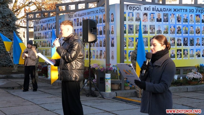 «Ми проводимо мітинг-реквієм з молитвою на «Алеї Героїв, які загинули за Україну». У нас тут розміщено 600 фото Героїв, сім'ї яких проживають у Житомирській міській територіальній громаді. Але я хочу зазначити, на жаль, невдовзі ми будемо відкривати 11 стенд. Ми на сьогодні вже маємо на відпрацюванні 60 фото полеглих Героїв», – говорить директорка Житомирського міського центру соціальних служб Ольга Юрченко.