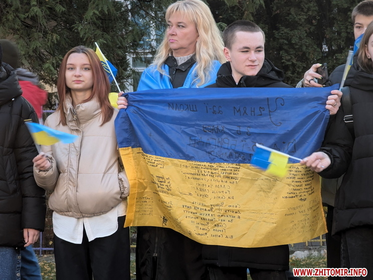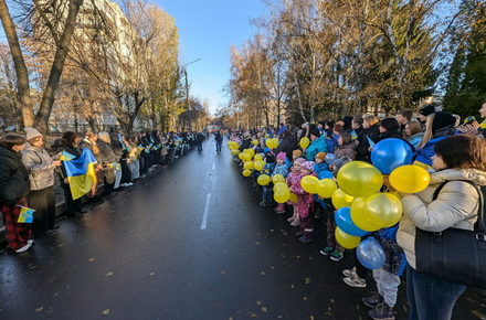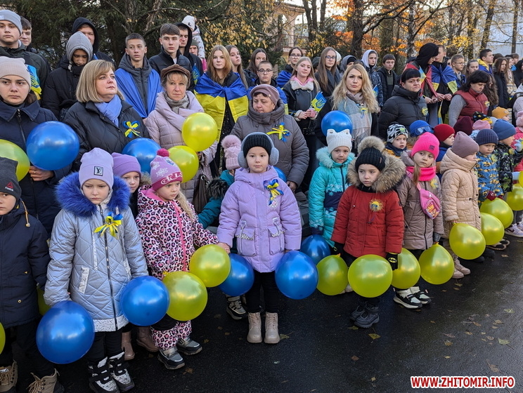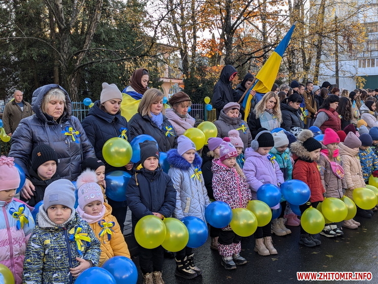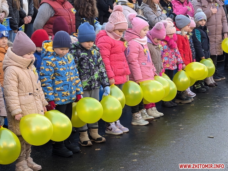 «У день 1000-ї доби від початку повномасштабного вторгнення російських військ в Україну у Житомирі відбувся патріотичний захід, який об’єднав понад 1000 учасників. Учні восьми закладів освіти разом з учителями та вихователями утворили живий ланцюг єдності, тримаючи в руках синьо-жовті стрічки, прапори та символи української боротьби за незалежність. Частка тепла і сили — до спільного руху за свободу», - йдеться в повідомленні.