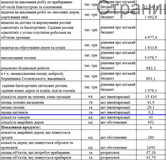 40 млн 389,7 тис. грн – утримання та поточний ремонт об’єктів благоустрою та озеленення (площа зелених насаджень 41,5 га, газонів – 29,1 га, квітників – 0,2 га, 41 сквер);