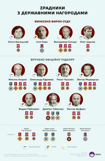 34 зрадники України позбавлені державних нагород України: Президент підписав відповідний указ.