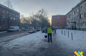 Протиожеледна обробка здійснюється і на прибудинкових територіях міста. Двірники та працівники управлінських компаній почали виконувати ці роботи з 5-ї ранку.