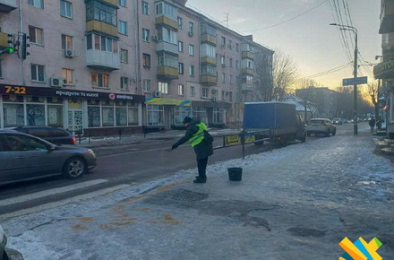 «Посипання тротуарів, дворових доріжок, виходів із під’їздів, а також територій навколо контейнерних майданчиків здійснюється першочергово в місцях, де утворилася льодова кірка. Загалом до роботи залучено понад 140 працівників керуючих компаній», - зазначив начальник управління житлового господарства міської ради Андрій Гуменюк.