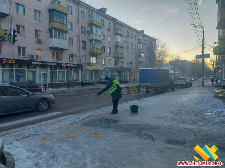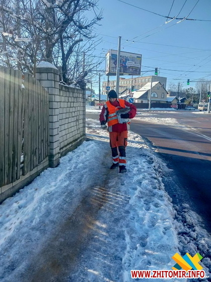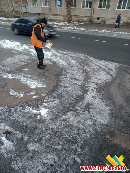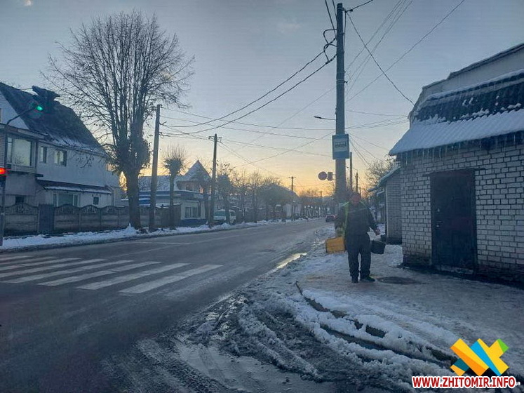 «Для обробки проїжджих частин та пішохідних доріжок Житомира з вечора 24 листопада до ранку 25 листопада було залучено 6 одиниць спецтехніки КП «Управління автомобільних шляхів» та підрядних підприємств, 135 працівників і 5 одиниць тротуарної техніки. В управлінні автомобільних шляхів зазначають, що через мобілізацію в їхній службі бракує співробітників. Тому першочергово посипають соляною сумішшю тротуари на центральних вулицях», - йдеться у повідомленні.