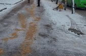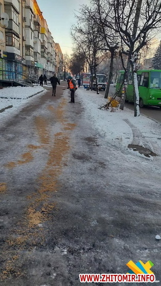 Щоб не було слизько 11 одиниць техніки та понад 300 працівників посипали вулиці та тротуари Житомира протиожеледною сумішшю.