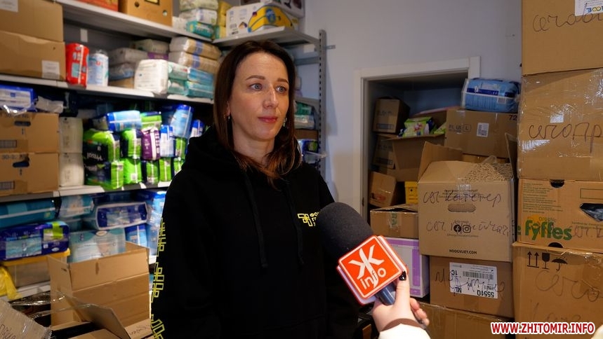 «Фонд громади Житомира» від початку повномасштабної війни допомагає для ВПО, постраждалих від війни та ЗСУ. Ми робимо все можливе від нас, щоб теж бути корисними в цих умовах. Ми порахували, що понад 3,5 тис. родин переселенців звернулися до нас за допомогою. Не всі з них отримали допомогу, близько 70% отримали, інші поки що перебувають в черзі. У нас допомога така: продуктовий набір, це одноразова допомога, одяг, взуття, також є змога отримати щось із побутової техніки, але це за відповідними запитами», – розповідає голова правління Фонду громади Житомира Жанна Соловйова.