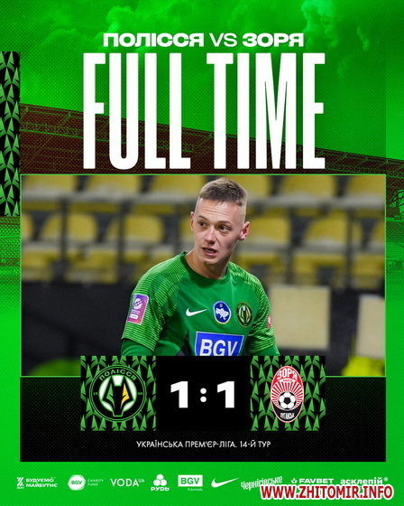 «Нічия в Житомирі. Голом за «Полісся» відзначився Едуард Сарапій», - йдеться в повідомленні.