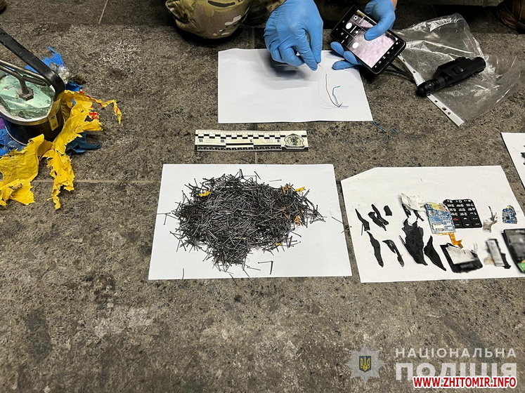 «Фігуранти підірвали вибуховий пристрій 20 листопада біля будівлі райуправління поліції в Житомирі. Внаслідок вибуху травми отримав один поліцейський. Правоохоронці встановили, що до злочину причетні п’ятеро зловмисників, які діяли на замовлення спецслужб росії. Серед фігурантів – четверо житомирян, серед яких – двоє неповнолітніх, та харків’янин, раніше судимий за розбій, грабіж та зґвалтування. Криміналісти та вибухотехніки поліції вилучили з місця події залишки вибухового пристрою, серед якого були й цвяхи, як вражаючі елементи, рештки мобільного телефону та відеокамера дистанційної передачі зображення», - йдеться у повідомленні.