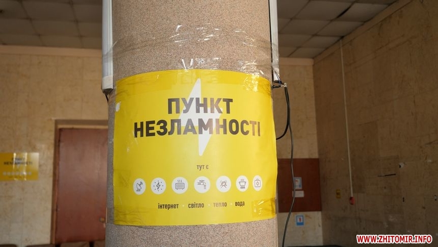 «Через 1 годину після закінчення сигналу «Повітряна тривога» запрацювали «Пункти незламності» (адреси див. тут). Наразі більша частина міста з електропостачанням. Там, де воно є (ред. світло) – «Пункти незламності» закриваються, де немає світла – вони працюють. Робота «Пунктів незламності» починається через 1 годину в будні дні, через 2 годині у вихідні після сигналу «Відбій повітряної тривоги». А також у разі довготривалого відключення електроенергії, тобто блекауту», – каже заступник Житомирського міського голови Олег Смаль.