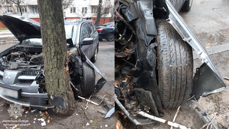 У Житомирі водій Mitsubishi не впорався з керуванням та в’їхав у дерево. Медекспертиза довела, що він був напідпитку. Крім того, чоловік кермував авто на літній гумі.