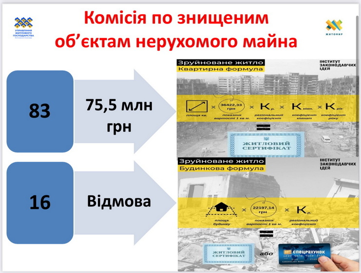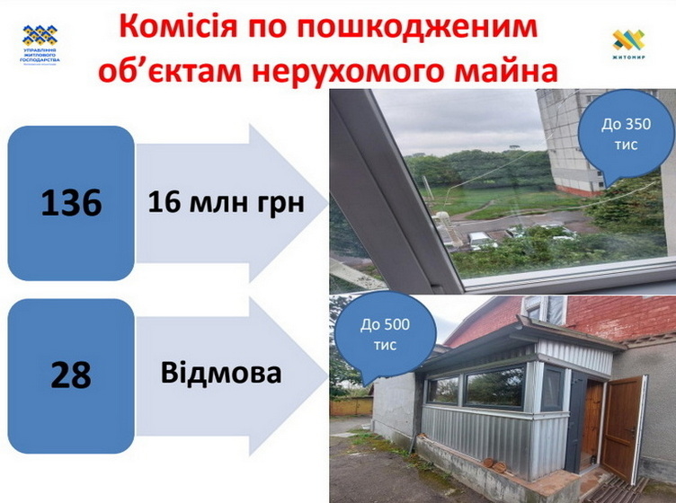 Нагадаємо, станом на 9 жовтня у Житомирській громаді комісії опрацювали 252 заяви на компенсації за пошкоджене та знищене житло, 15% отримали відмову.