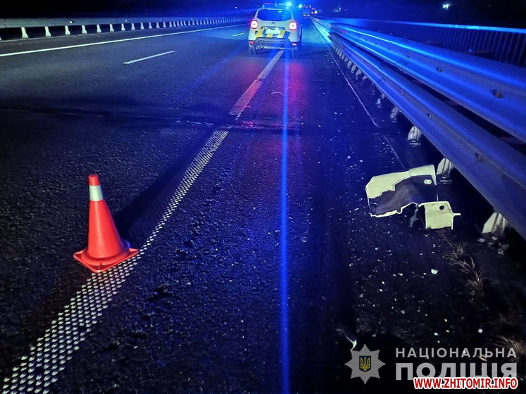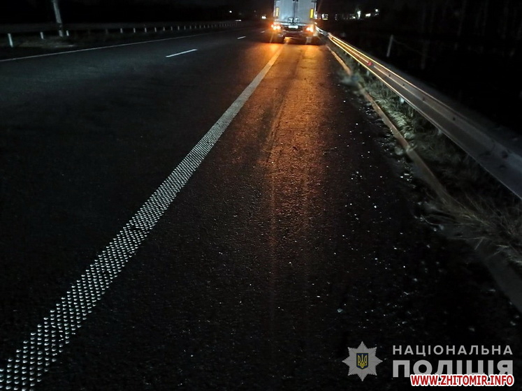 «Дорожньо-транспортна пригода сталася 16 грудня близько 18:50 на трасі Київ-Чоп, поблизу с. Наталівки. Попередньо, 43-річний житель столиці, водій автомобіля «Renault», здійснив наїзд на 26-річного жителя Житомирського району, який ішов у попутному напрямку», - йдеться в повідомленні.