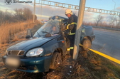 На місці стало відомо, що внаслідок зіткнення легковика зі стовпом водія затисло в автівці і він не зміг самостійно вибратися.