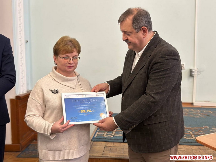 Житомиру вручили Європейську енергетичну відзнаку. Керівник Програми співробітництва Посольства Швейцарської Конфедерації в Україні Сільван Хунгербюлер 19 грудня під час чергового засідання сесії міської ради передав відзнаку. Ця нагорода підтверджує високий рівень енергетичної ефективності та кліматичної політики міста.