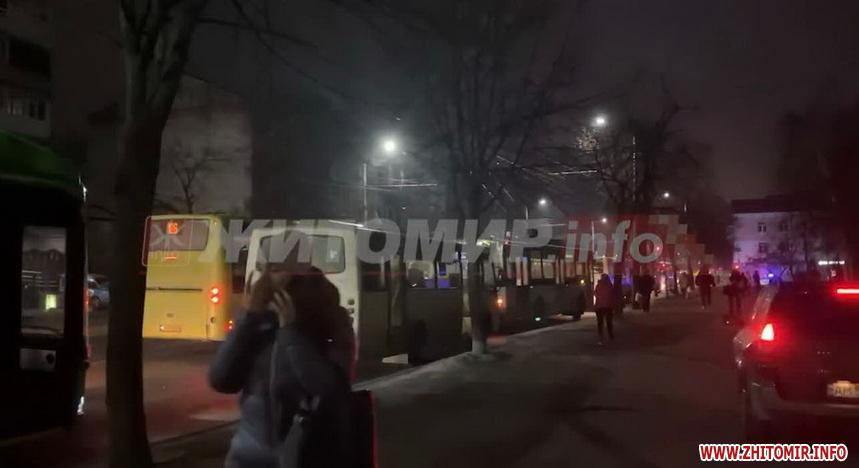У Житомирі 23 грудня близько 19.30 год перекривали вулицю Київську. На дорозі неподалік Князів Острозьких увесь громадський транспорт стояв, на місці працювали правоохоронці. Попередньо, вулицю перекрили через перевірку повідомлення про замінований автомобіль.