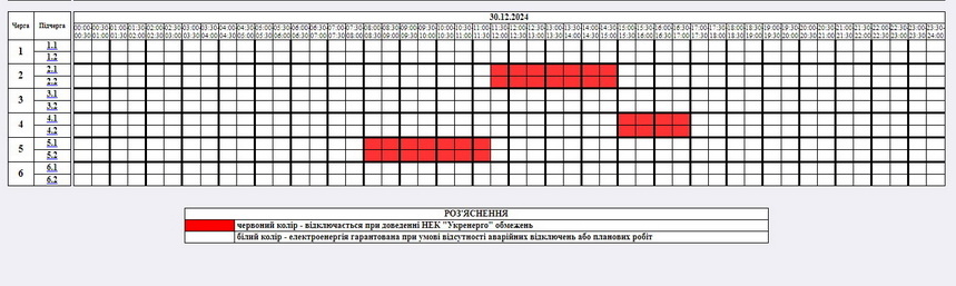 Завтра, 30 грудня, згідно з розпорядженням НЕК «Укренерго», час застосування і обсяг обмежень на Житомирщині будуть такими: