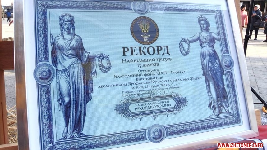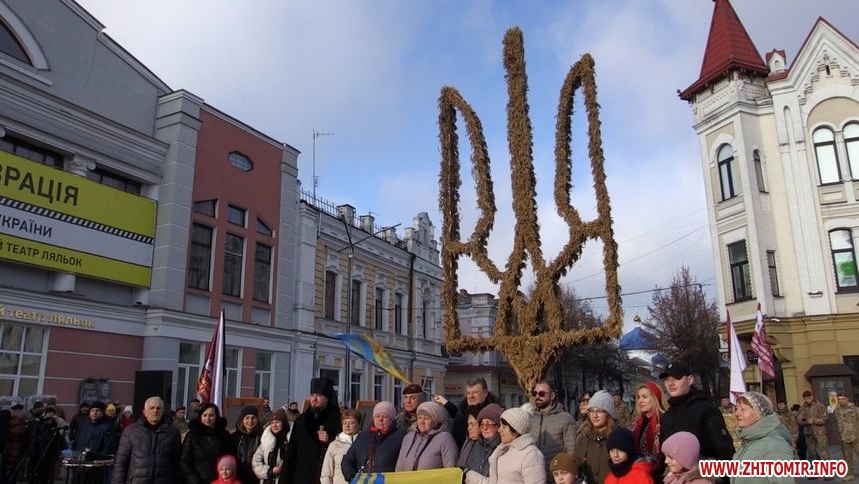 30 грудня у Житомирі на Михайлівській презентували найбільший в Україні тризуб, який виготовлений з дідухів. Його висота сягає 7,41 метра.
