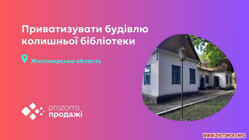 У селищі Ємільчине Звягельського району на Житомирщині можна приватизувати будівлю колишньої бібліотеки за адресою вул. Захисників України, 1-А. Загальна площа приміщення — майже 230 м².