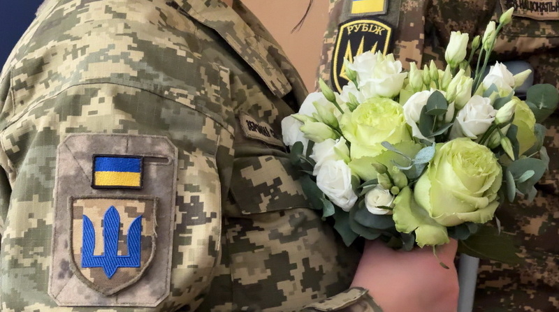 «Ми як зустрілися з Іри, певний час прожили разом, і через короткий період зрозуміли, що зійшлися. Так вийшло, що спочатку я поїхав у зону бойових. Ми хотіли розписатися, а мене не відпустили, бо треба було заходити на позиції. Після поранення, коли я вже тут опинився, у Ірени вийшло взяти відпустку у зв'язку з таким святом. І ось зараз ми тут», – ділиться військовослужбовець Національної гвардії України Валентин.