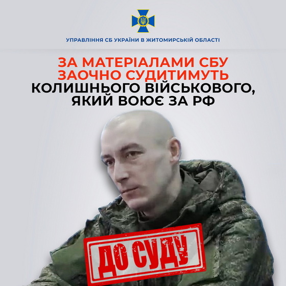 «Слідчі Служби безпеки скерували до суду обвинувальний акт щодо зрадника, який вступив до регулярного військового формування рф та воює проти Сил оборони на Луганщині. За матеріалами слідства, фігурантом є 33-річний уродженець Ізюма - колишній військовослужбовець однієї з військових частин Житомирщини. Початок повномасштабної війни застав фігуранта у Кремінній на Луганщині. Перебравшись на тимчасово захоплену агресором територію України, зрадник приєднався до окупаційних військ», - йдеться в повідомленні.