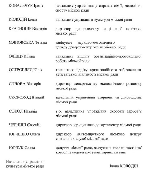 «Затвердити склад робочої групи щодо створення та написання Програми розвитку та функціонування української мови в усіх сферах життя Житомирської міської територіальної громади на 2025-2027 роки згідно з додатком», - йдеться у документі.