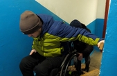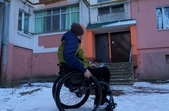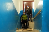 Дістатися до власної квартири чоловіку складно, адже будинок до цього не пристосований – у під'їзді не має електричного підйомника, натомість ОСББ обладнало сходи тимчасовою конструкцією. Кожного дня чоловік стикається зі складнощами, потрапити на вулицю йому допомагає батько.