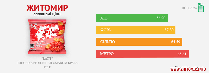 Моніторинг здійснено на основі інформації, отриманої за методом контрольної закупки 10.01.2025 р. у місцях продажу: АТБ, пр. Миру, 15 А, Фора, вул. Лятошинського, 2, Метро, вул. Ватутіна, 55-в, Сільпо, вул. Житній ринок, 1