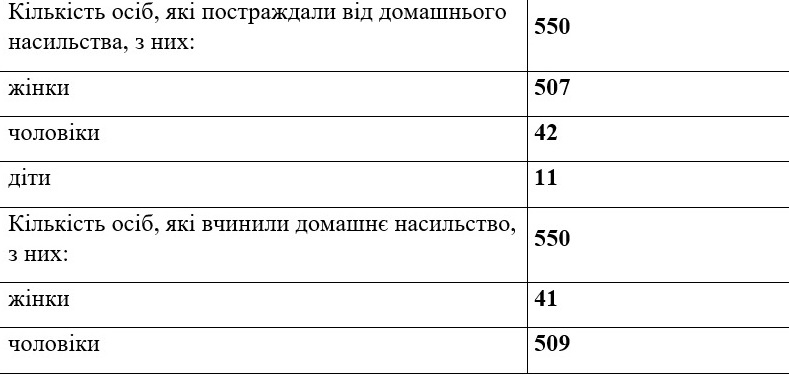 На профілактичному обліку в органах поліції у зв'язку з вчиненням домашнього насильства, перебувають 494 особи, з них чоловіків - 422, жінок – 72.