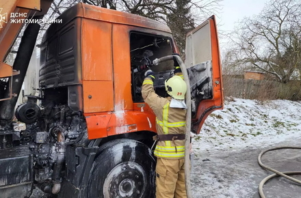 «16 січня о 13:02 до Служби порятунку «101» надійшло повідомлення про загоряння в кабіні вантажівки у с. Турчинівка Житомирського району. Водій намагався самостійно ліквідувати пожежу за допомогою вогнегасника, але його не вистачило. Місцеві жителі допомогли керманичу носити воду з колодязя, аби швидше загасити вогонь», - йдеться в повідомленні.