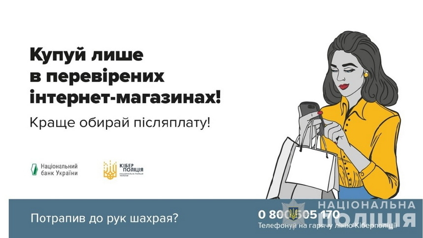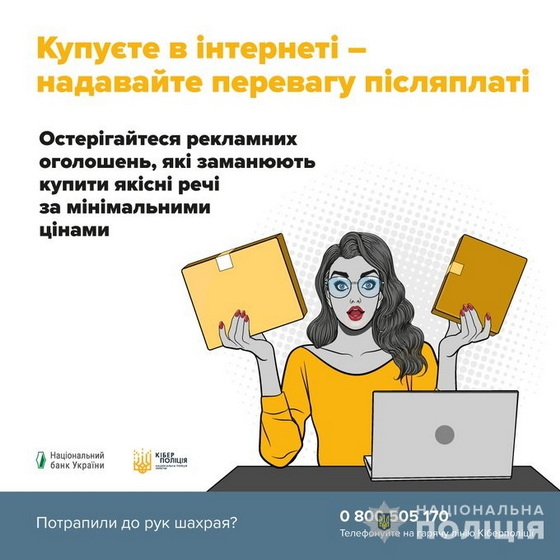 - під час купівлі товару в Інтернеті завжди використовуйте післяплату, щоб унеможливити шанси шахраїв заволодіти вашими коштами;