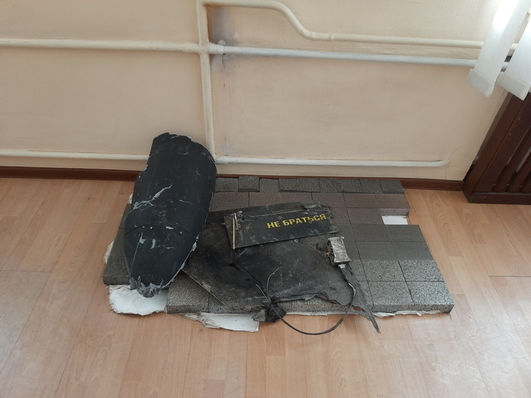 Уламки російського безпілотника в кабінеті заступника мера Житомира. Фото Олени Кущенко