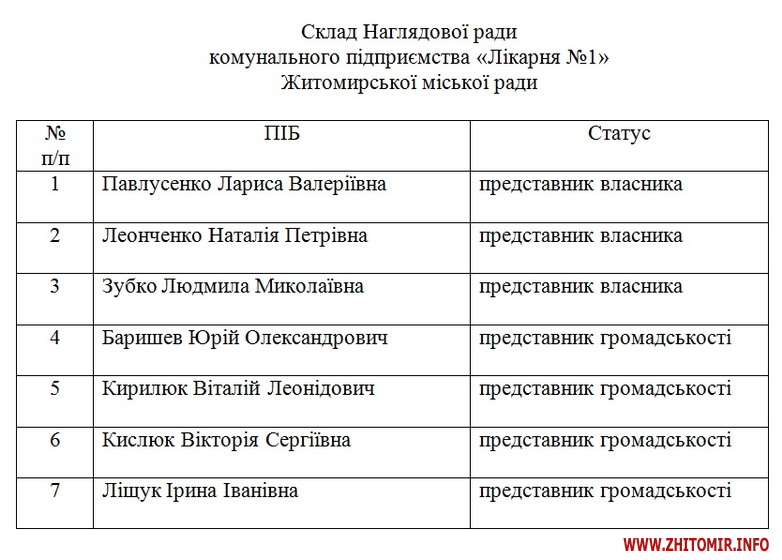 «У квітні 2024 року була створена конкурсна комісія, в яку входили представники Житомирської міської ради, департаменту охорони здоров’я Житомирської ОВА, а також представники громадських організацій. Впродовж декількох місяців проходив конкурсний відбір незалежних членів. Було визначено, що в КП «Лікарня №1» буде 7 членів наглядової ради, в КП «Лікарня №2 імені В.П. Павлусенка» – 9. 19 грудня сесією міської ради було затверджено склад наглядових рад», – пояснює заступниця Житомирського міського голови Марія Місюрова.