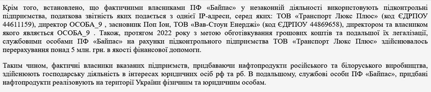 В Єдиному реєстрі судових рішень є інформація про кримінальне провадження, відкрите 10 травня 2022 року за ознаками кримінальних правопорушень, передбачених ч. 1 ст. 111-2 (Пособництво державі-агресору), ч. 3 ст. 110-2 КК України (Фінансування дій, вчинених з метою насильницької зміни чи повалення конституційного ладу або захоплення державної влади, зміни меж території або державного кордону України), в матеріалах якого згадується ТОВ «Транспорт Люкс Плюс», засновником якого є Іон Поп.