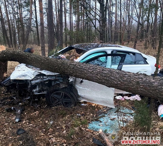 «Попередньо, 37-річний водій автомобіля «Mercedes», житель Київщини, рухаючись у напрямку міста Житомира, здійснив зіткнення з автобусом, а потім виїхав за межі проїзної частини, де зіткнувся з деревом. У результаті ДТП травми отримали керманич легковика та троє його пасажирів: 37-річна жінка та двоє дівчаток, віком 4 та 11 років. Їх було госпіталізовано», - йдеться в повідомленні.