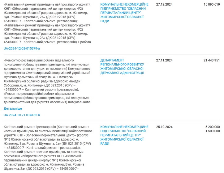 За даними аналітичного порталу YouControl, активну участь у тендерах ТОВ «Будівельна компанія "Люксбудсервіс"» почало брати з 2022 року, зокрема, минулого року фірма уклала три договори на загальну суму понад 40 млн грн. Зокрема, на ремонт укриття драмтеатру в Житомирі за 21,4 млн грн (єдиний учасник торгів) та на капітальний ремонт укриття обласного перинатального центру за 5,2 млн грн (найдорожча пропозиція).