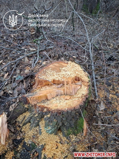 «Державними інспекторами з охорони навколишнього природного середовища Поліського округу розглянуто звернення, що надійшло на вебресурс «ЕкоЗагроза», стосовно незаконної вирубки дерев поблизу с. Високе Високівської ТГ (Житомирський район) на земельній ділянці комунальної власності», - йдеться в повідомленні.