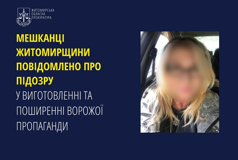 «Жителька м. Андрушівки на своєму акаунті під вигаданим ім’ям у соцмережі Facebook протягом серпня 2023 – червня 2024 років створювала і поширювала контенти з наративами ворожої пропаганди. До її сторінки мала доступ значна кількість підписників. Публікації та відео містили провокативні заклики чоловікам самоорганізовуватися і налагоджувати зв’язки з іншими групами для об’єднання українців, росіян та білорусів у «єдіний народ». Стверджувалося, що Україна не переможе, просто йде зачищення території. Крім цього, підозрювана у ЗМІ поширювала відео і коментарі, у яких заперечувалася незалежність і суверенність України, висловлювалися сумніви щодо демаркації державних кордонів», - інформує пресслужба Житомирської обласної прокуратури.