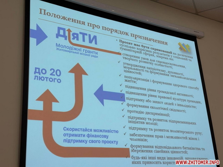Нагадаємо, 26 січня 2024 року міська рада оголосила грант для молоді Житомира на втілення соціально значущих творчих проєктів у соціальній та гуманітарній сфері.