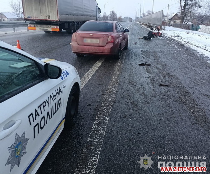 «Дорожньо-транспортна пригода сталася близько 8:20 на автошляху Київ-Чоп. Тоді відбулося зіткнення між автомобілем «Chevrolet», за кермом якого перебував 33-річний житель Вінниччини, та візком з електричним приводом, яким 58-річний місцевий житель перетинав автошлях», - йдеться в повідомленні.